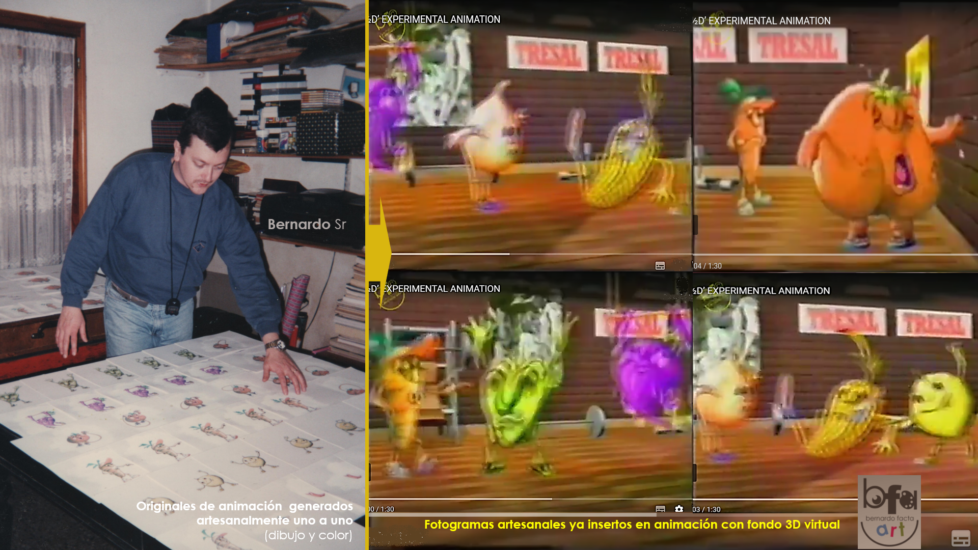 Siendo la parte artisanal mi tarea principal, Alexandro Irusta estaba a cargo de la finalización tecnológica, digamos. Afortunadamente la animación es tarea de Equipo casi siempre.